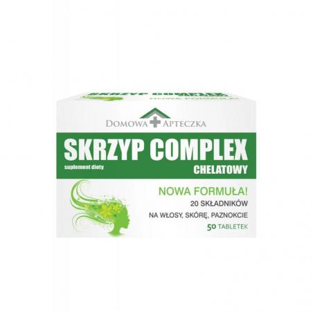 Skrzyp Complex Chelatowy: 20 aktywnych składników, w tym skrzyp i pokrzywa. Bogaty skład suplementu diety wspiera zdrowe włosy, skórę i paznokcie.