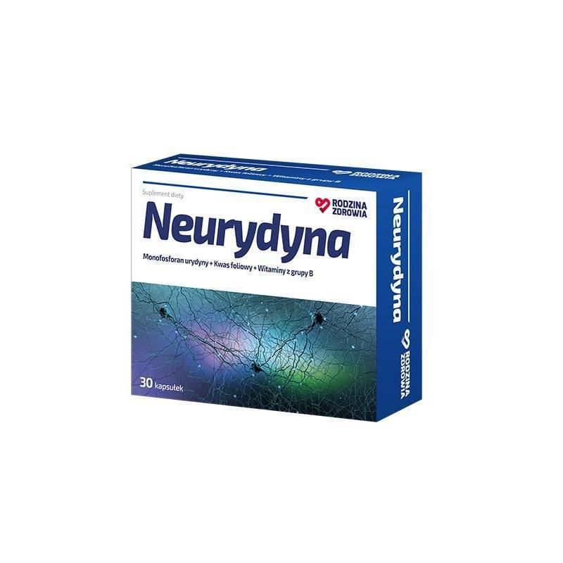 Rodzina Zdrowia Neurydyna to suplement diety przeznaczony dla osób dorosłych, który zawiera w swoim składzie witaminy z grupy B (tiamine, ryboflawine, witaminy: B6 i B12) oraz monofosforan urydyny, kwas foliowy i selen. Tiamina, ryboflawina, witaminy: B6 i B12 - pomagają w prawidłowym funkcjonowaniu układu nerwowego. Selen pomaga w ochronie komórek przed stresem oksydacyjnym.