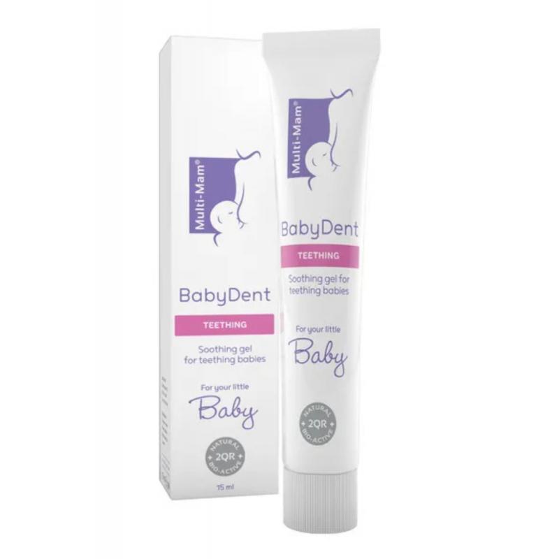 Multi-Mam BabyDent to żel na ząbkowanie przynoszący szybką ulgę. Aloes i kwas hialuronowy koją podrażnione dziąsła. Bezpieczny po połknięciu, bez cukru.