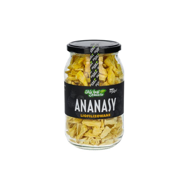 Ananas liofilizowany to produkt spożywczy otrzymywany przez poddanie ananasa procesowi liofilizacji, który polega na zamrożeniu ananasa, a następnie usunięciu wody przez sublimację. Dzięki temu procesowi ananas liofilizowany staje się lekki i chrupiący, a jednocześnie zachowuje większość wartości odżywczych, smaku i aromatu świeżego ananasa.