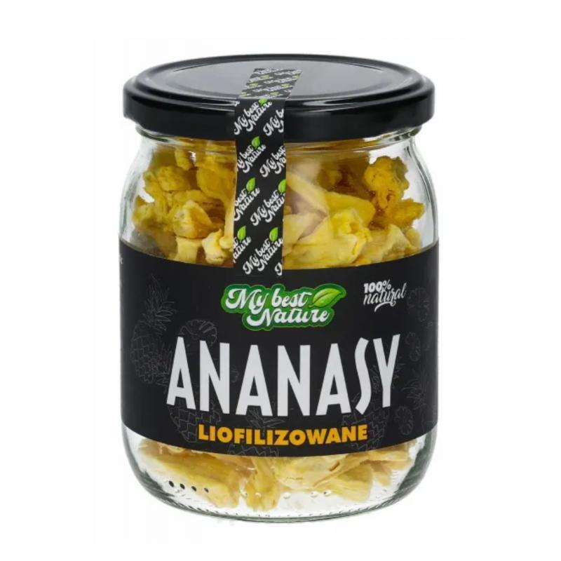Ananas liofilizowany to produkt spożywczy otrzymywany przez poddanie ananasa procesowi liofilizacji, który polega na zamrożeniu ananasa, a następnie usunięciu wody przez sublimację. Dzięki temu procesowi ananas liofilizowany staje się lekki i chrupiący, a jednocześnie zachowuje większość wartości odżywczych, smaku i aromatu świeżego ananasa.