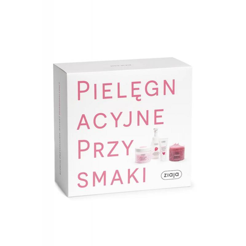 Zestaw Marshmallow: peeling, galaretka do kąpieli, pianka myjąca i krem do rąk. Niesamowity truskawkowy aromat. Zaproszenie do owocowej pielęgnacji i relaksu.