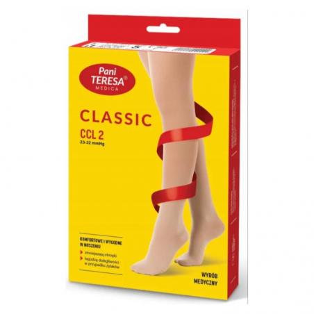 Pończochy uciskowe samonośne Pani Teresa Classic to produkt w II klasie kompresji (23-32 mmHg), który od wielu lat cieszy się ogromną popularnością wsród wyrobów przeciwżylakowych.